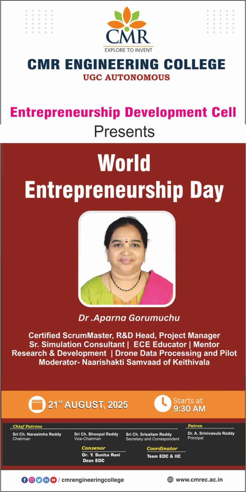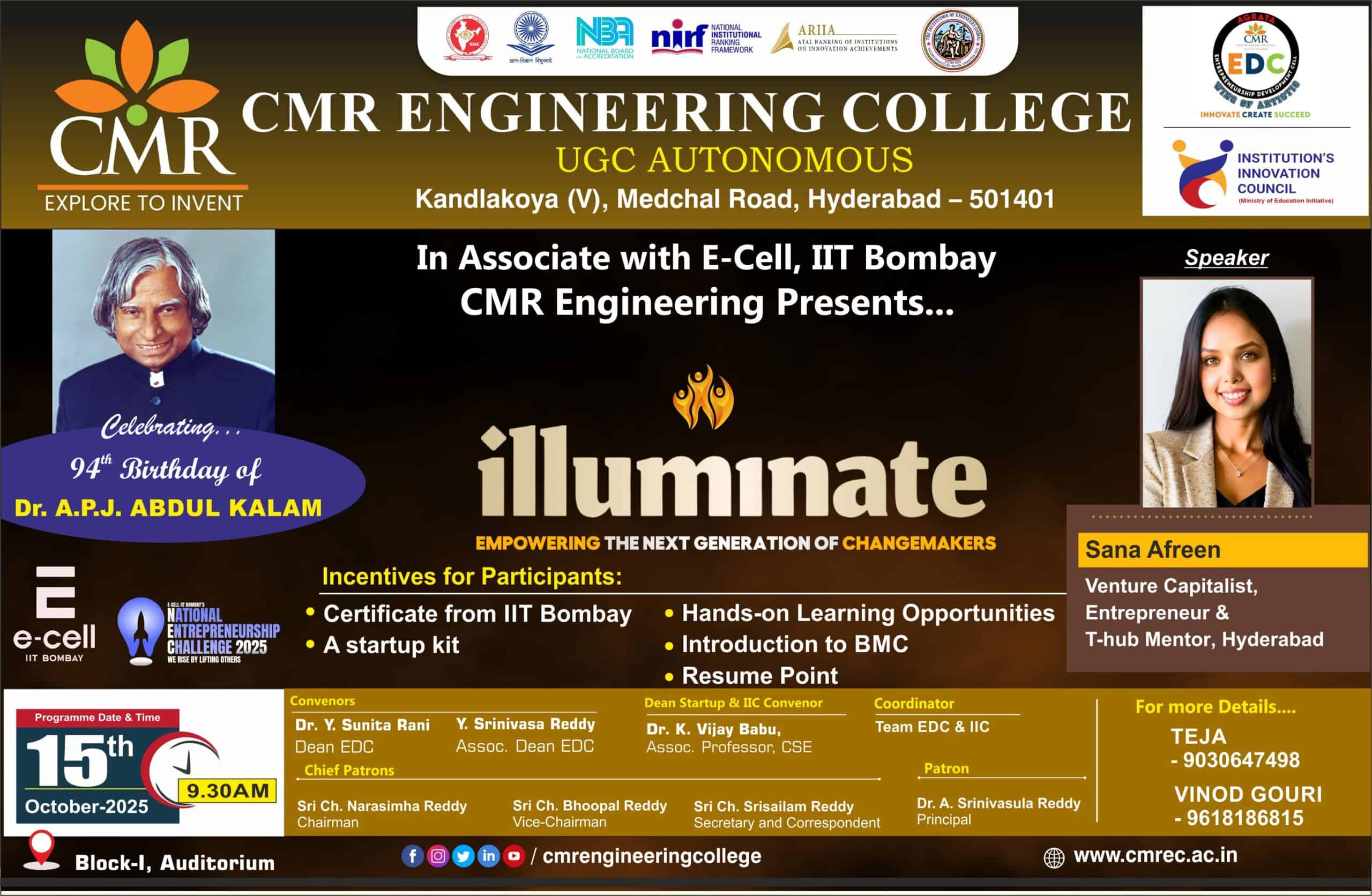 Economic development of a country is supported by entrepreneurship in several ways. It is a key contributor to innovativeness and product improvement and a pivotal ingredient to employment creation. Another important aspect to be considered is that in the context of the Indian market, entrepreneurship led economic growth is more inclusive and hence Governments, both at Centre and State level, have been taking initiatives to boost the entrepreneurial ecosystem as they realize the benefits entrepreneurship brings to the economic growth of the country. EDC cell was established on its own initiative in the year 2013 with principal Dr.A. Srinivasula Reddy, Shri.Ch. Bhupal Reddy vice chairman and secretary and correspondent Shri. Srisailam Reddy. The EDC cell called AGRATA is a manifestation of the efforts, ideas dreams and aspiration of every individual associated with it. It is established to develop the entrepreneurial perspective in every student life thus empowering them to excel as entrepreneurs. The ED Cell of the College conducts various awareness programmes such as Seminars, Workshops, Industrial Visits, Food Fest and Interaction with young Entrepreneurs etc. These programes are aimed at making the student community more enthusiastic towards entrepreneurial activity. The Advisory board for the ED cell comprises of members from industry, financial institutions, Research and Development, Government institutions etc. The board will guide and advise the cell in organizing various activities.